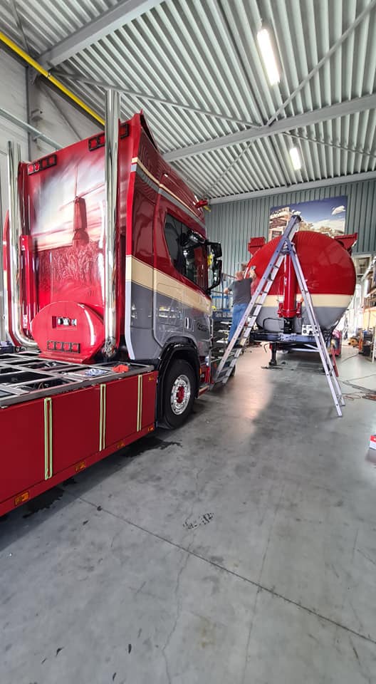 Het bouwen bij VDH truckstyling is een lang gedetailleerd proces waarbij enkel de top producten gebruikt worden. Na het verbouwen wordt de trekker in onderdelen naar de spuiter Perfect trading truck