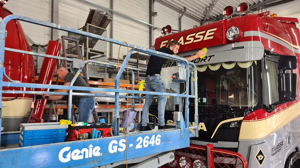 Na het verlossende telefoontje dat de Faasse Truck mee mocht doen mochten wij een team samen stellen om deze trekker en oplegger weer als nieuw te maken. Het team bestond uit de mij zelf, de mannen van Stoomreiniging Zeeland
