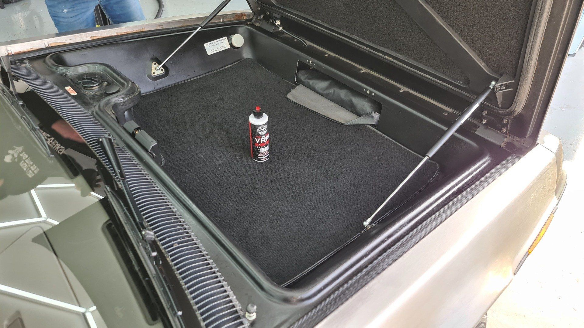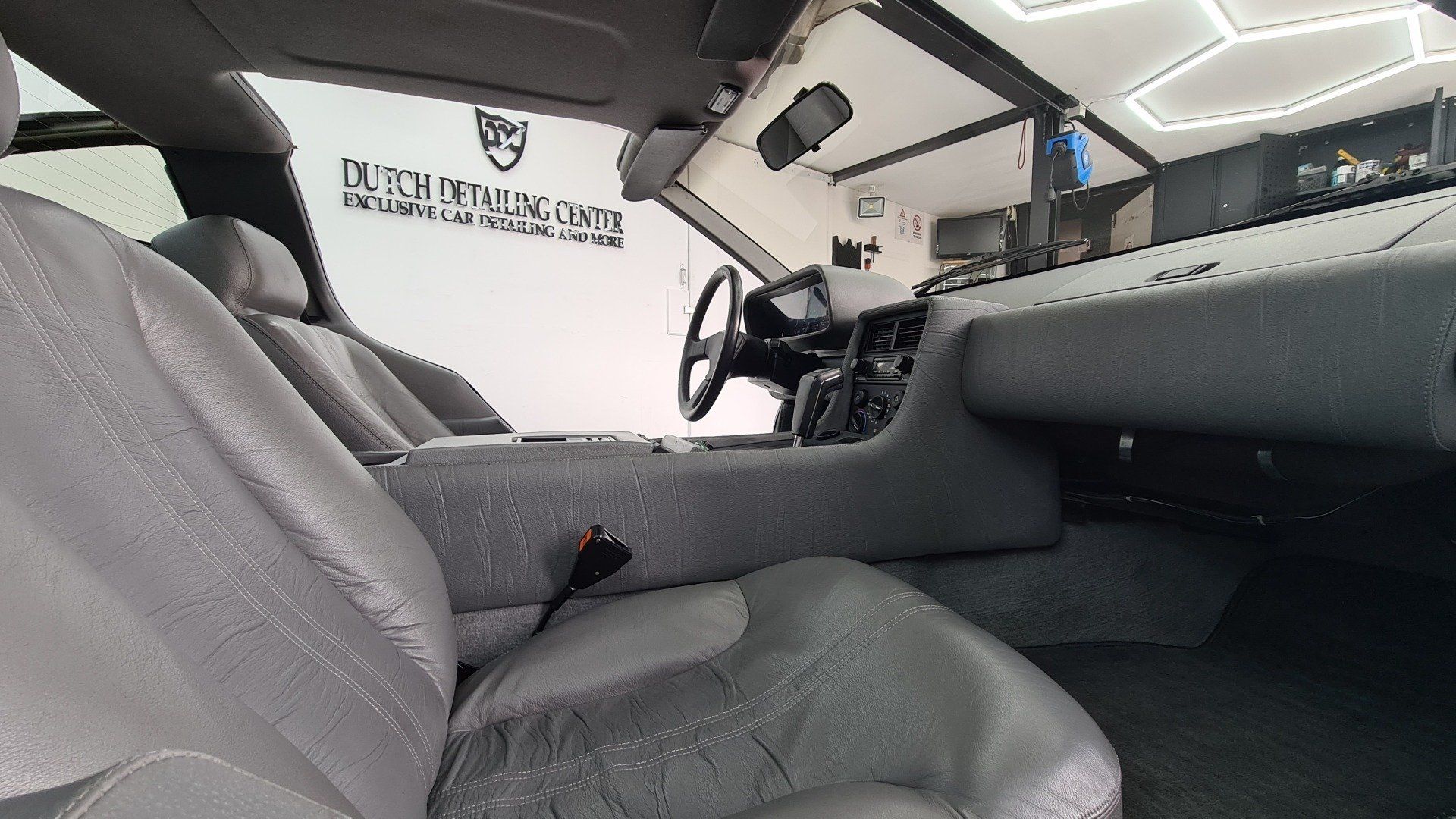 Door onze ervaring weten we dat RVS en chrome perfect reageren op het reinigen met stoom. De buitenkant hebben we daarom goed gereinigd met stoom. De binnenkant van de auto hebben we ook gereinigd met stoom en de lederen stoelen zijn met onze leer reiniger meerdere malen gereinigd en ingevet. de kunststof delen zijn ingevet met een goede trimvoeder die de kleur voor een langere tijd een diepe glans geeft en niet uitdroogt. De motorruimte was de grootste uitdaging. Door een koelvloeistoflek van jaren geleden was er veel aangetast. Na een flinke dag is de motor ruimte weer schoon en was de Delorean klaar om naar de veiling te gaan.