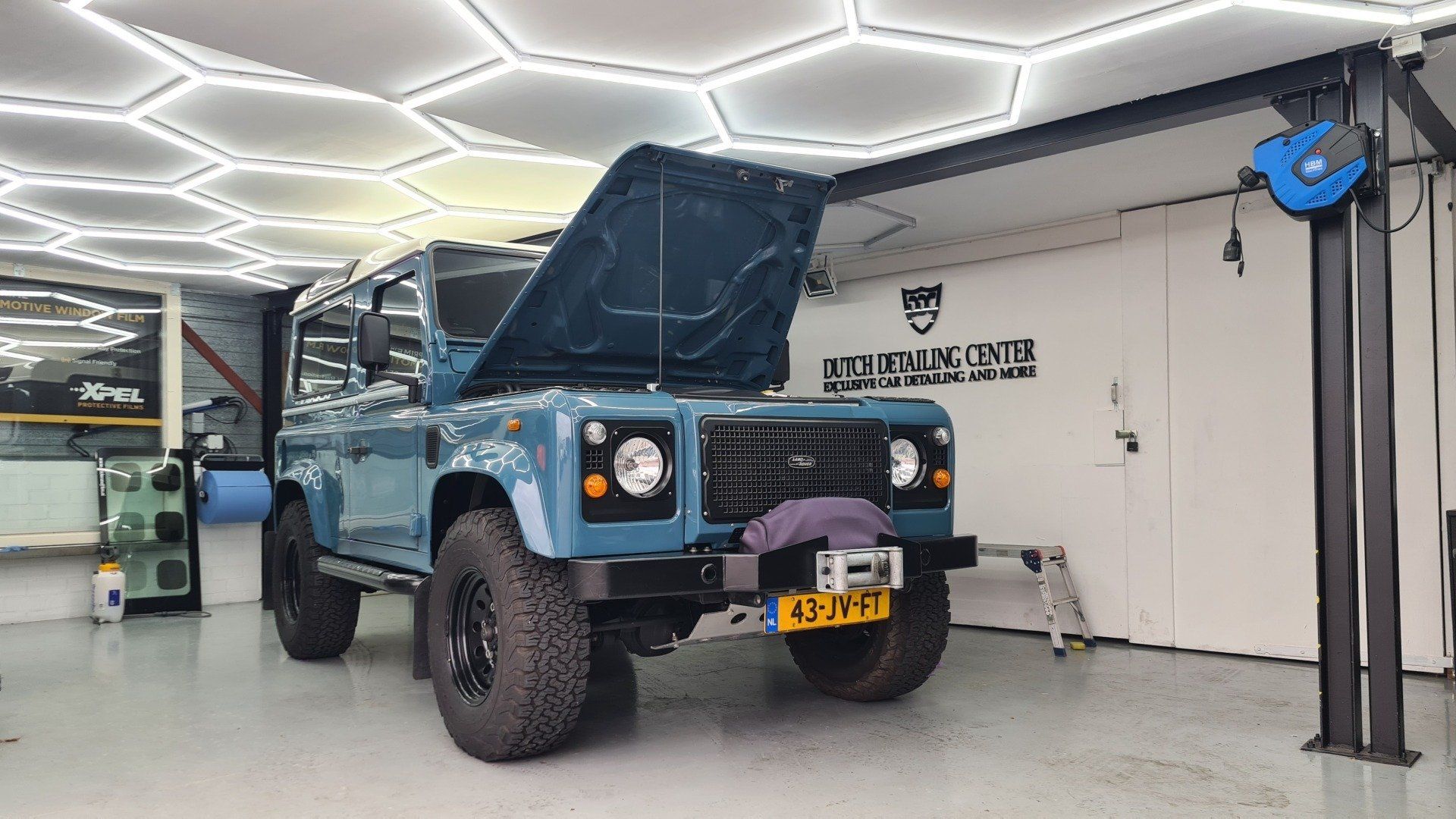 Nadat de Defender helemaal klaar is gemaakt kwam de auto naar ons toe voor een extra bescherming. De lak hebben we gepolijsten en op een aantal delen de kleine lak imprefecties. Nadat de lak weer perfect was hebben we de lak voorzien van een dubbele laag glascoating. De coating die wij gebruikt hebben voor deze auto is van Labocosmetica blindo 100\ HPC 100. Deze coating is perfect geschikt voor de langere bescherming van de lak vooral zoals de eigenaar met de auto wil blijven rijden.